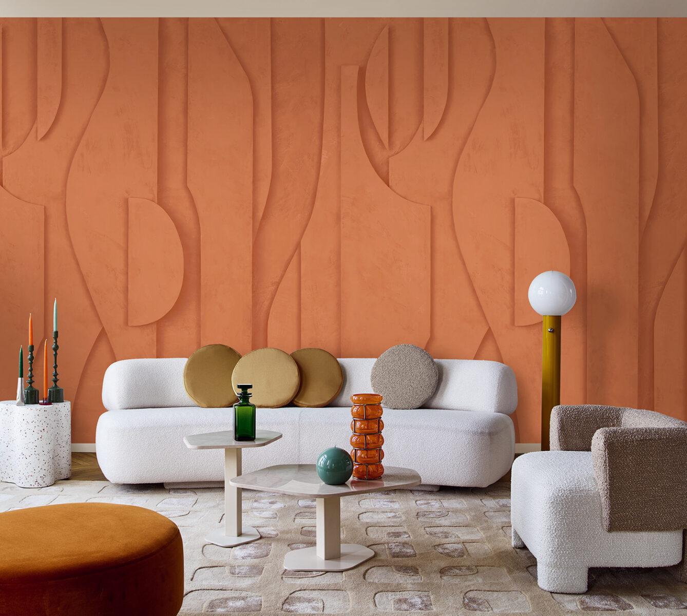 Выставка Paris Deco Off - 2026 стал наглядным подтверждением того, что к нам вернулся один из ключевых стилистических акцентов - утонченного Art Deco. Объемные элементы панно на стене в теплой цветовой гамме.